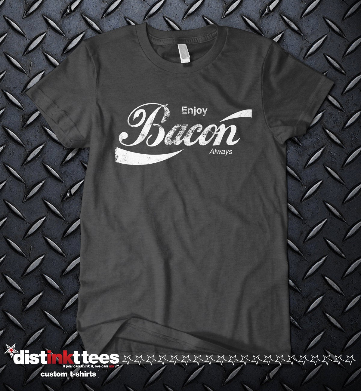 ENJOY BACON ALWAYS! Bacon Festivals are popping up all over. We're doing a Bacon Festival on the 15th of March in NY. Great shirt for a festival! This is a one of a kind shirt. Designed and printed by Distinkt Tees.