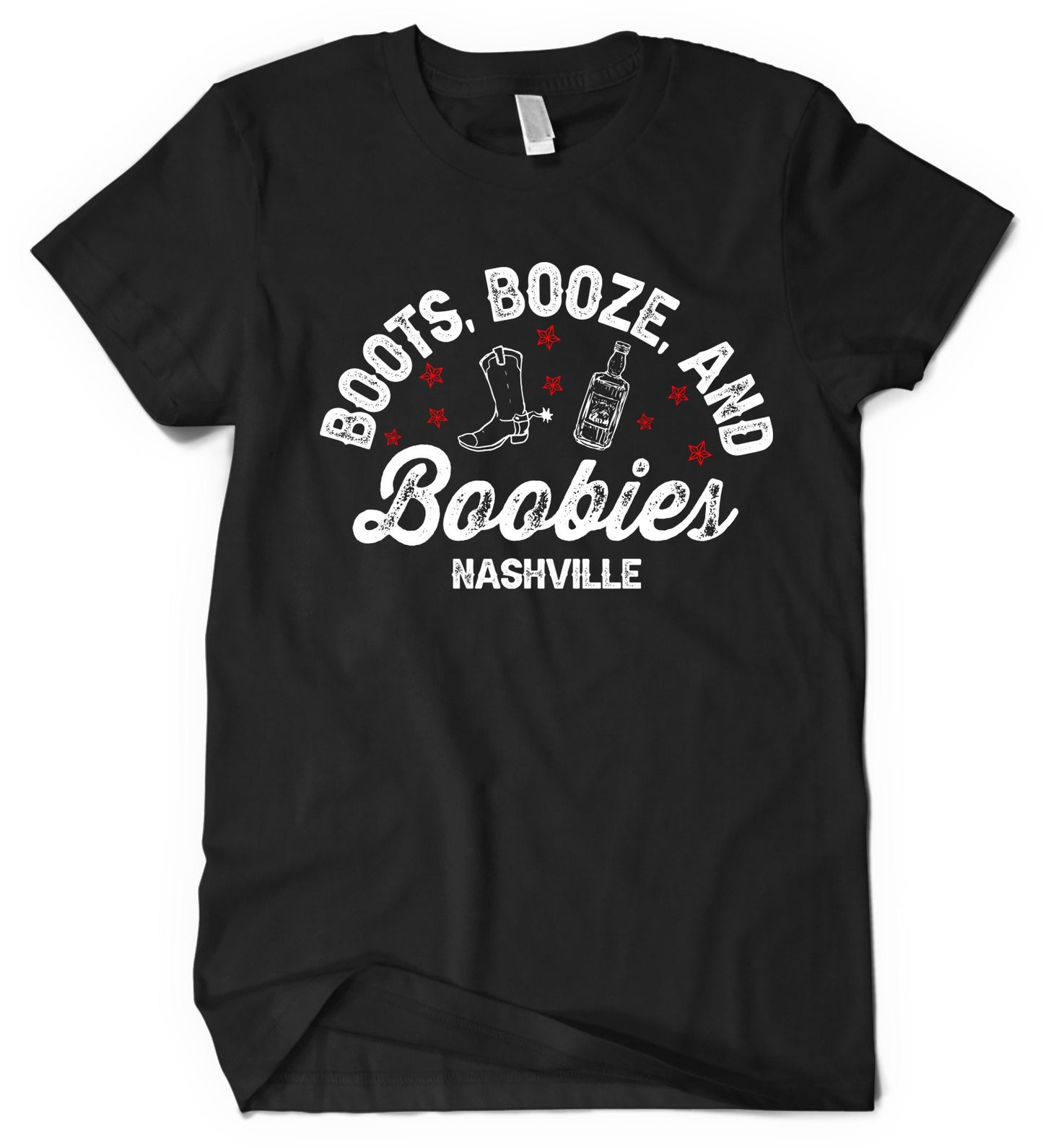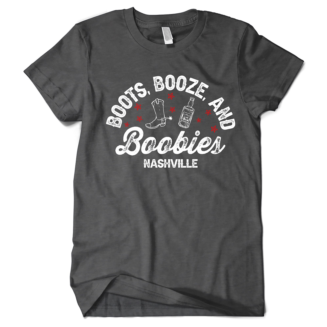 Printed with our Boots, Boobs and Boobies design, this t-shirt is super soft and comfy, with the right amount of stretch, and flattering for all body sizes.