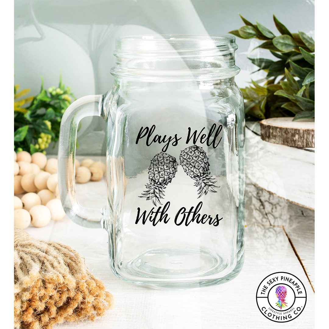 These printed Mason Jars with handle are perfect for any table setting. The simple yet sexy and elegant design is perfect for your dinning room table, backyard, swinger party, lifestyle event or as a gift for anyone.