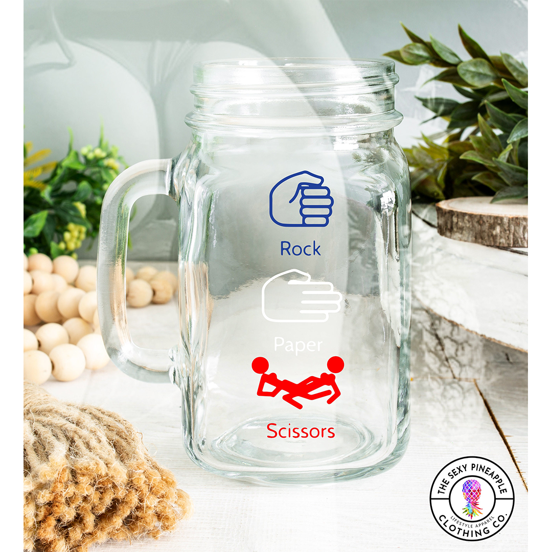 Rock, Paper, Scissors mature mason jar