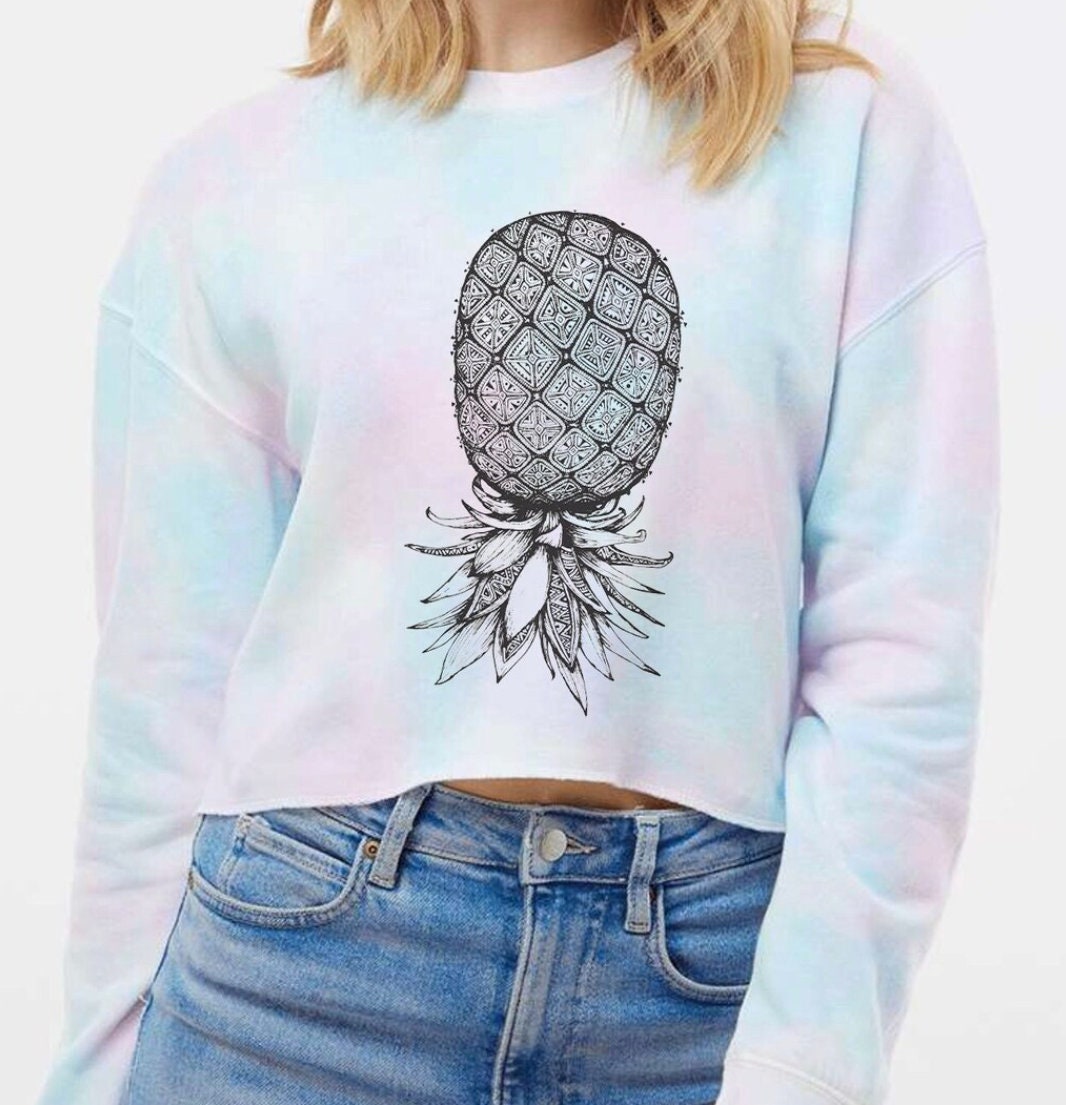 Upside Down Pineapple Tribal Crop Top Crewneck Sweatshirt, Swinger Lifestyle, Pineapple Tops, Gender Neutral, Pineapple Graphic Prints